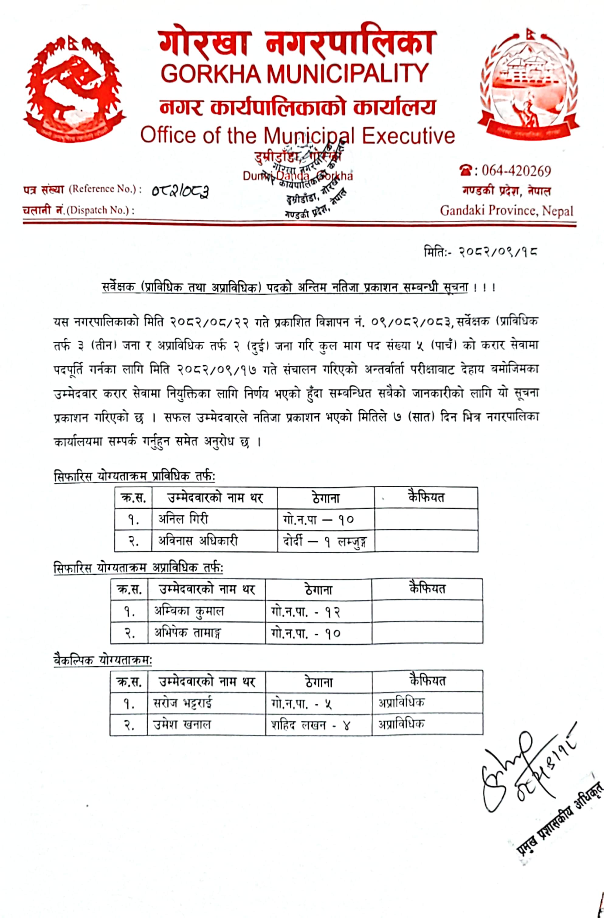 कार्यालय सहायक पदको अन्तिम नतिजा प्रकाशन सम्बन्धी सूचना