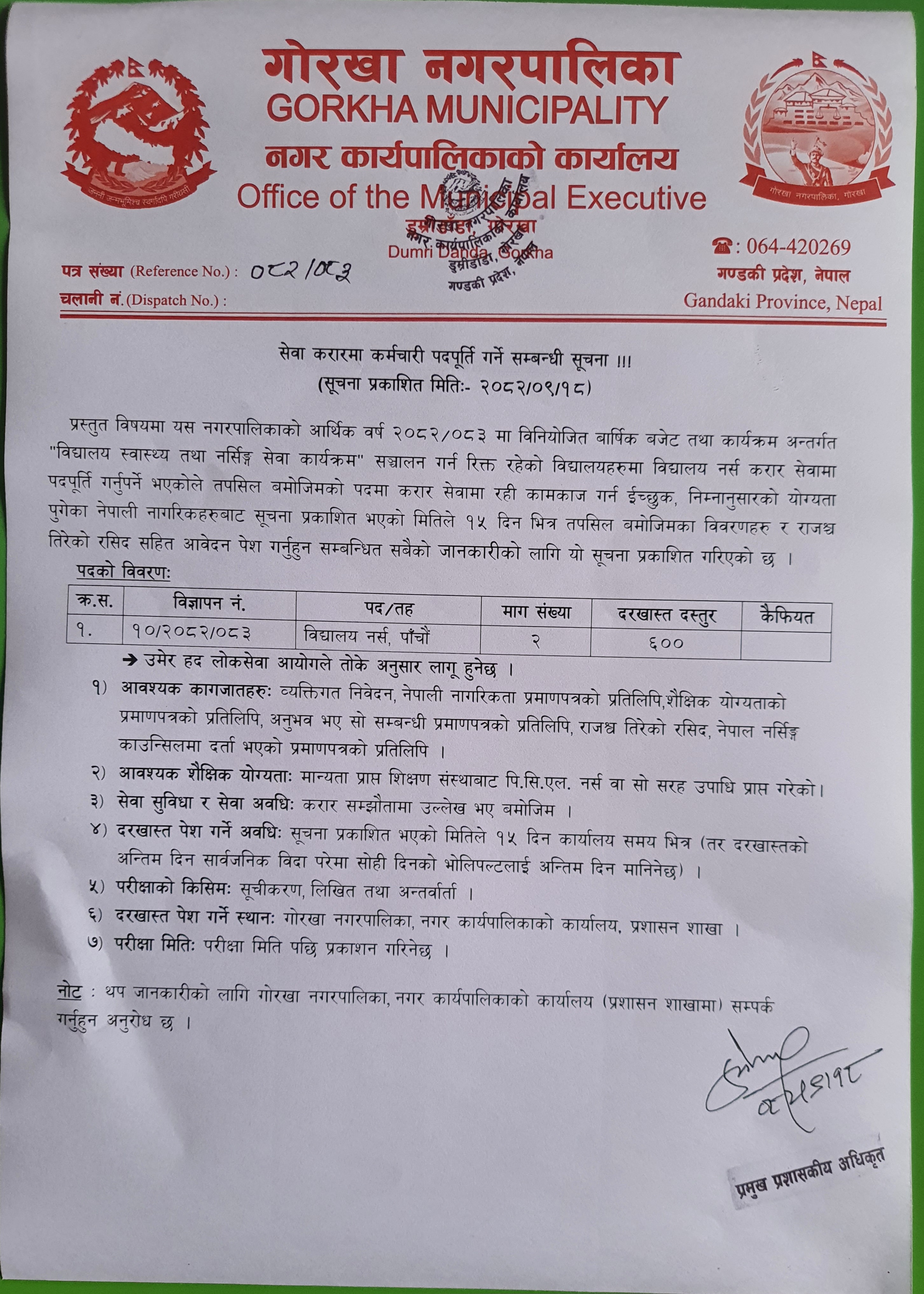 सेवा करारमा कर्मचारी पदपूर्ति गर्ने सम्बन्धी सूचना