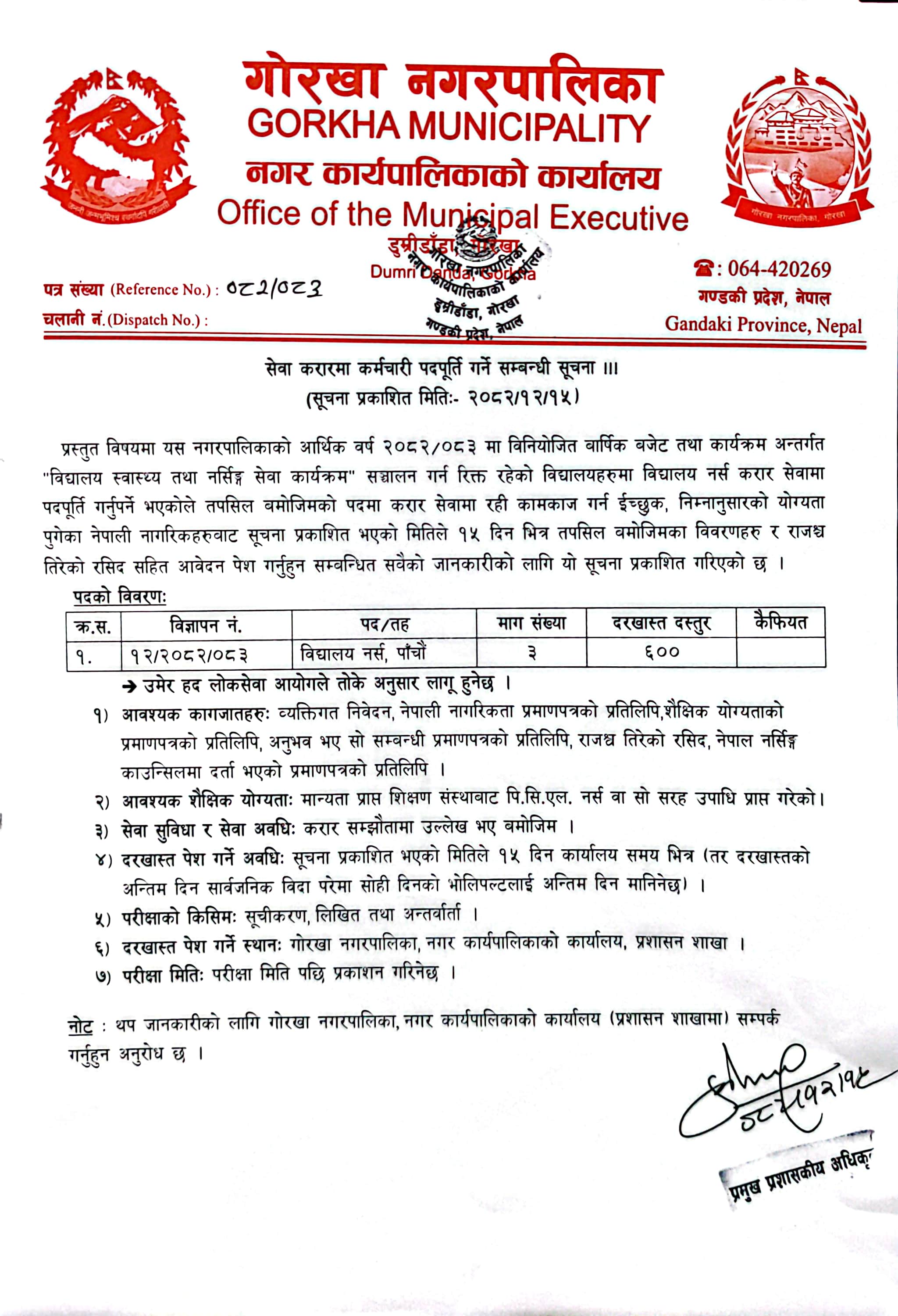 सेवा करारमा कर्मचारी पदपूर्ति गर्ने सम्बन्धी सूचना