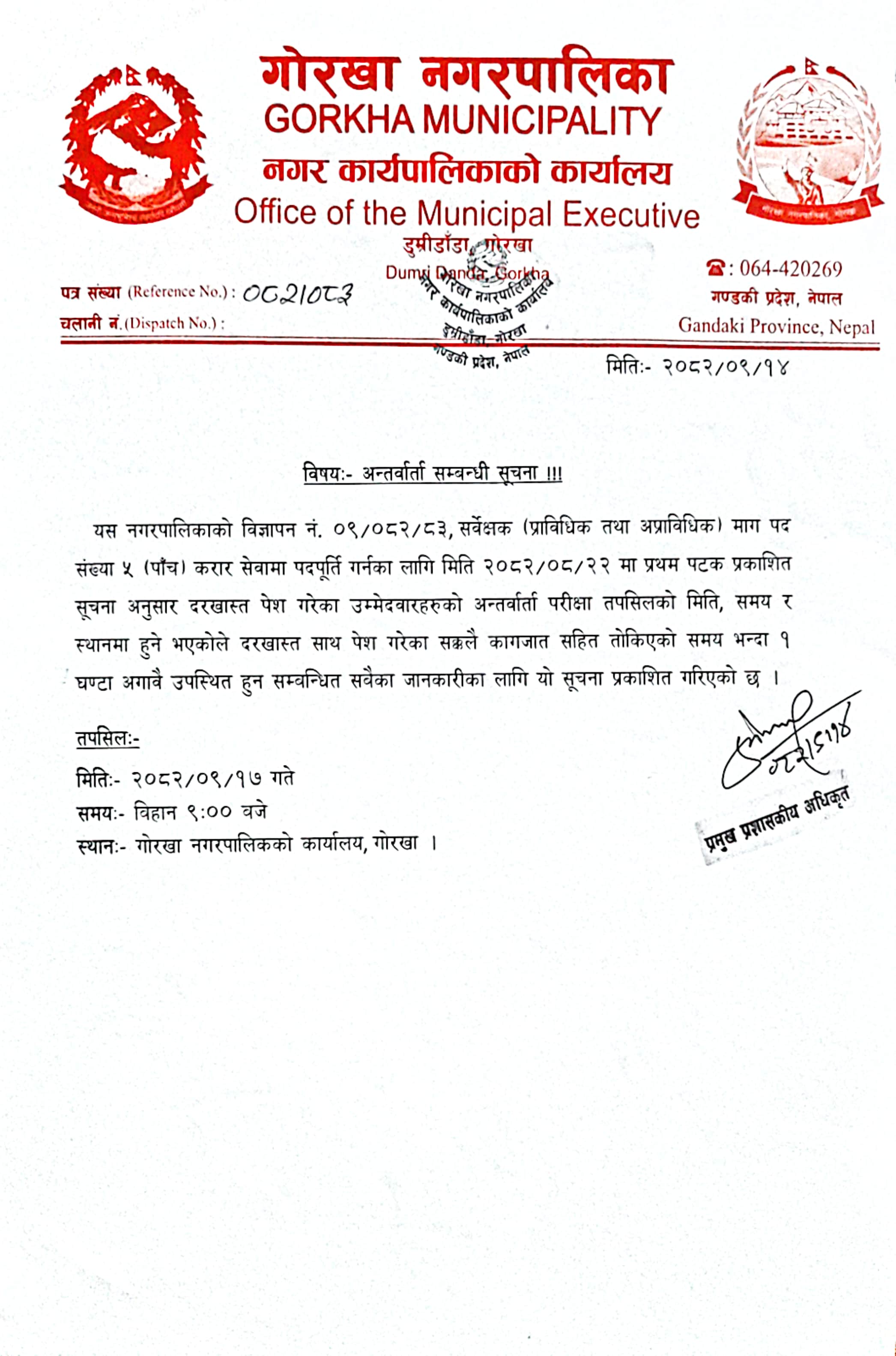 » सर्वेक्षक पदको अन्तरवार्ता सम्बन्धी सूचना