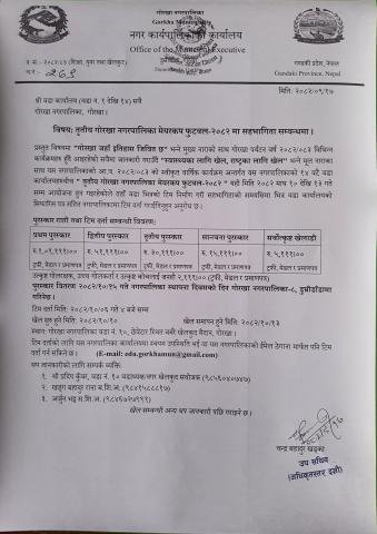 » तृतीय गोरखा नगरपालिका मेयर कप फुटबल-२०८२ मा सहभागिता सम्बन्धमा