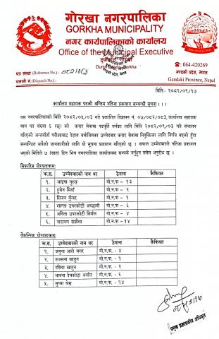 सेवा करारमा कर्मचारी पदपूर्ति गर्ने सम्बन्धी सूचना