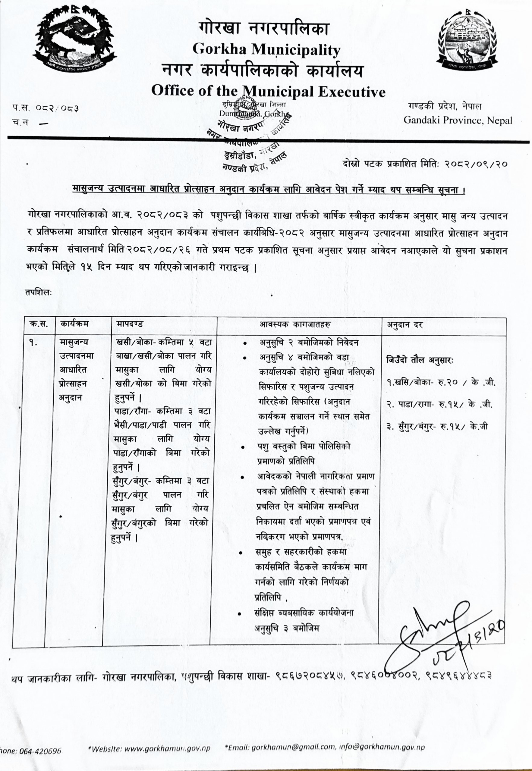 » मासुजन्य उत्पादनमा आधारित प्रोत्साहन अनुदान कार्यक्रमका लागि आवेदन पेश गर्ने म्याद थप सम्बन्धी सूचना