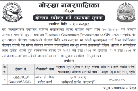 Gorkha Municipality Municipal Rate List F/Y 2082-83