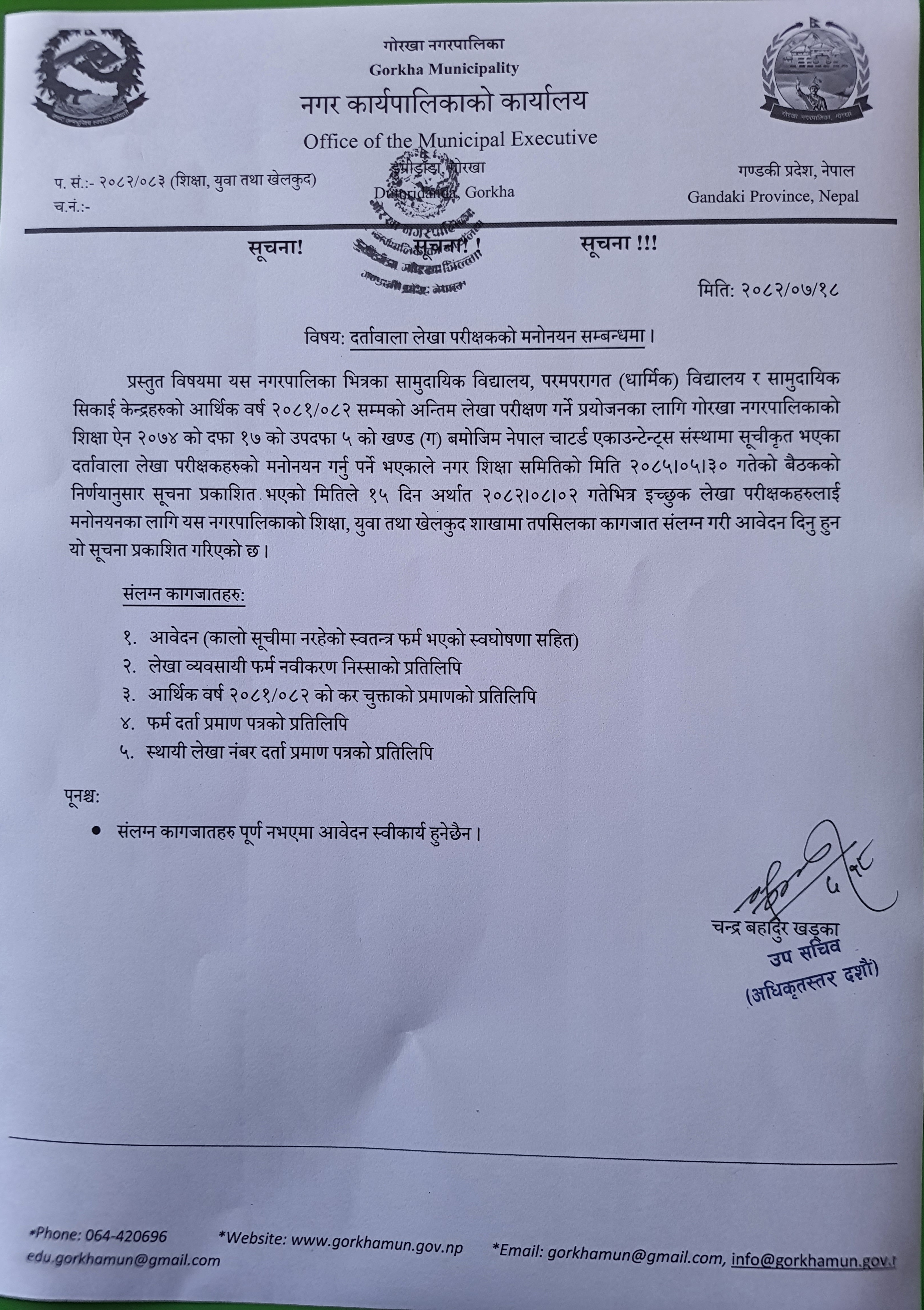 » दर्तावाला लेखा परिक्षकको मनोनयन बारे