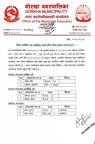 कार्यालय सहयोगी पदको अन्तरवार्ता सम्बन्धी सूचना
