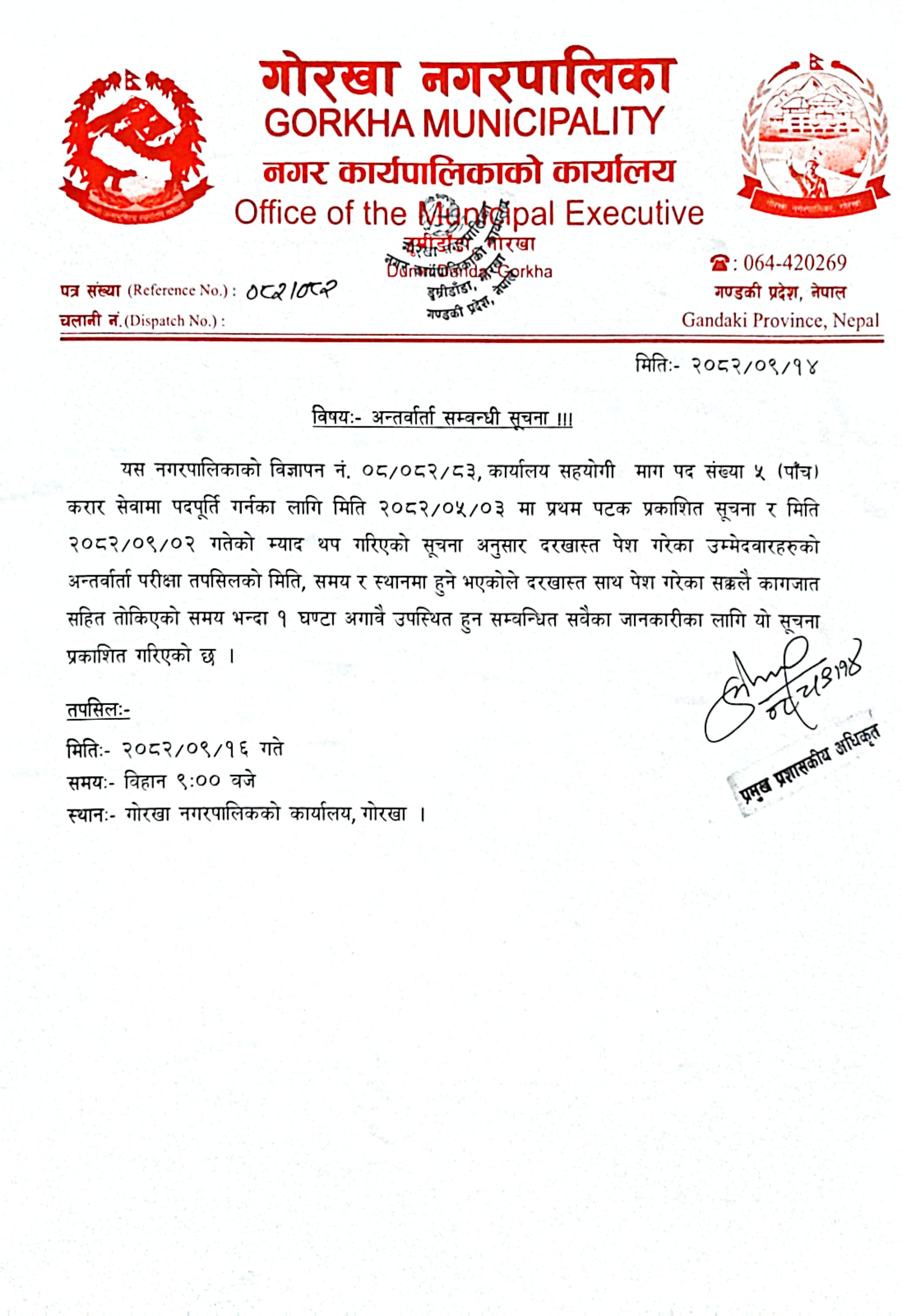 कार्यालय सहयोगी पदको अन्तरवार्ता सम्बन्धी सूचना